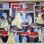 Actually, he has flattened the three-dimensional cubism, (recorded) his political message and with a sense of pleasure colored these almost concrete compositions with his very specific color attitude. Creamy yellow, frosted, cobalt blue, strong green, punctuated by sudden bursts of gray in gray.